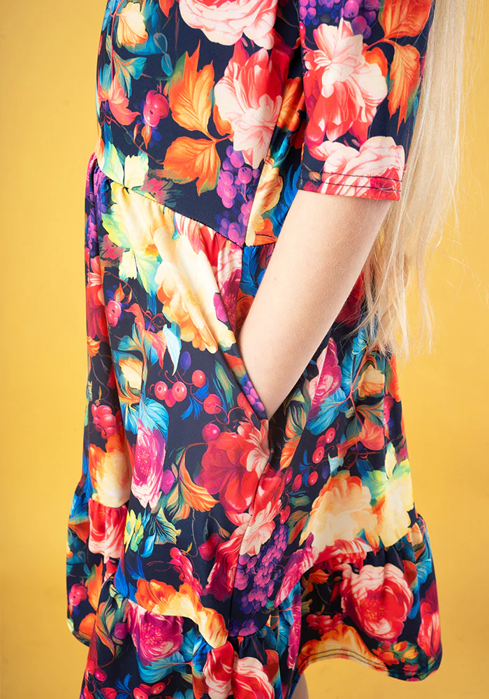 Children's Bright Blurred Floral Print Dress (Jules)