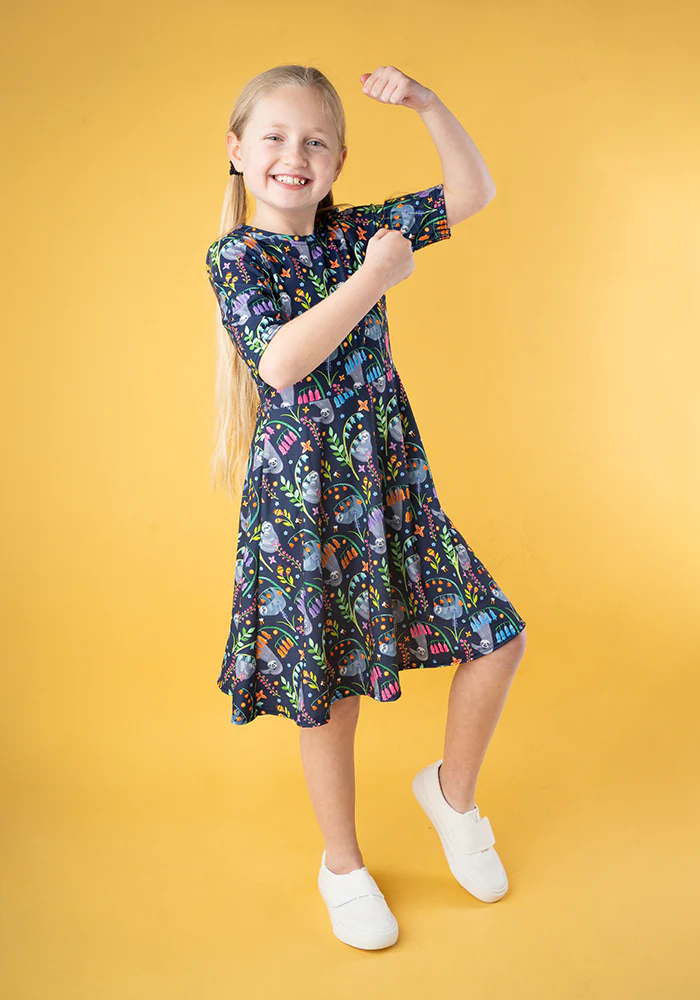 Children's Garden Sloth Print Dress (Ensley)