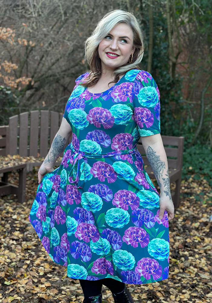 January Carnation Birth Flower Print Dress