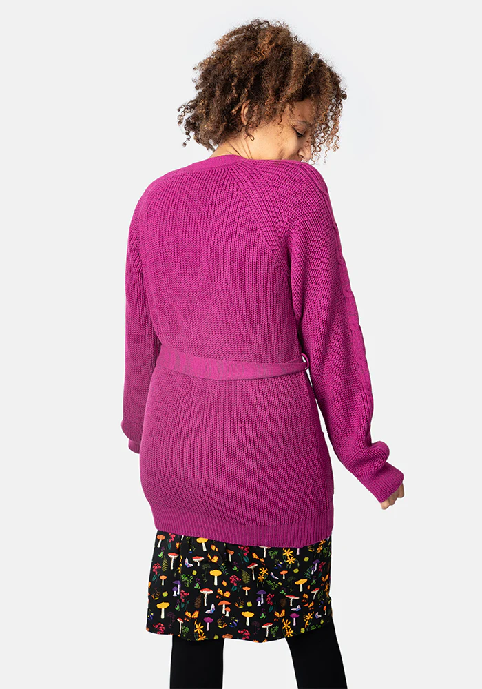 Magenta Long Line Cable Sleeve Cardigan