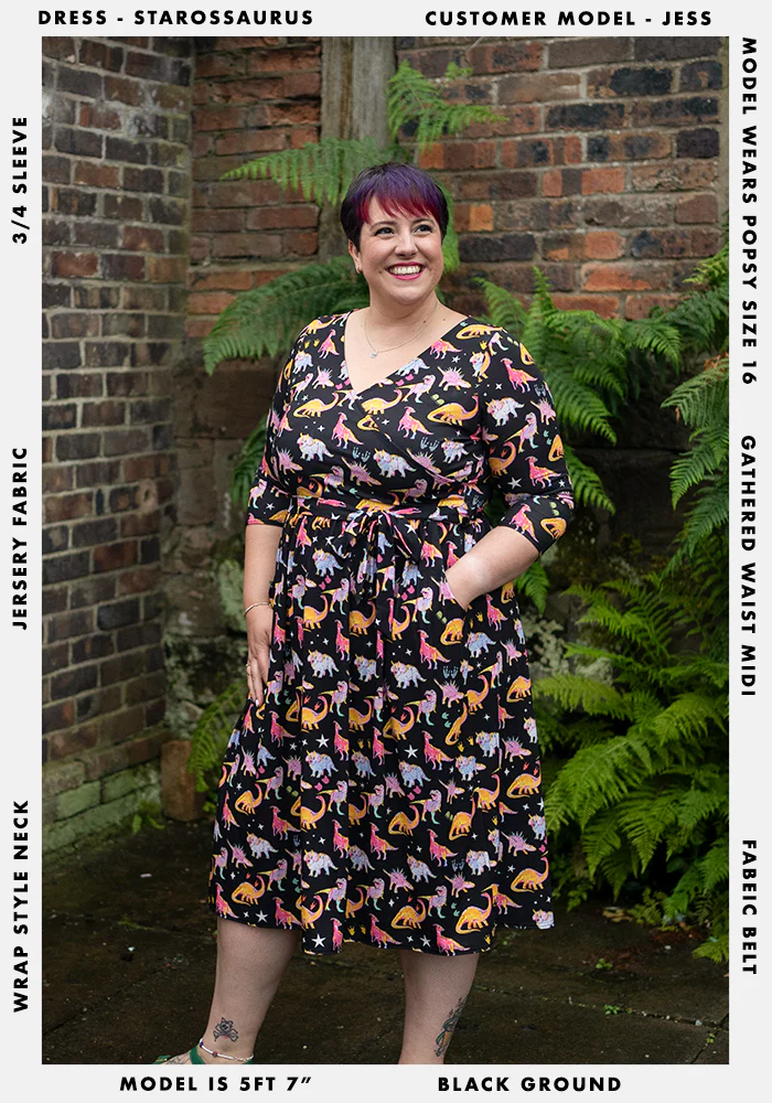 Starossaurus Cosmic Dinosaur Print Midi Dress